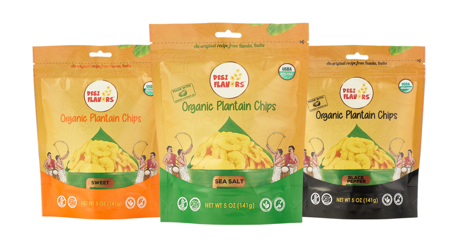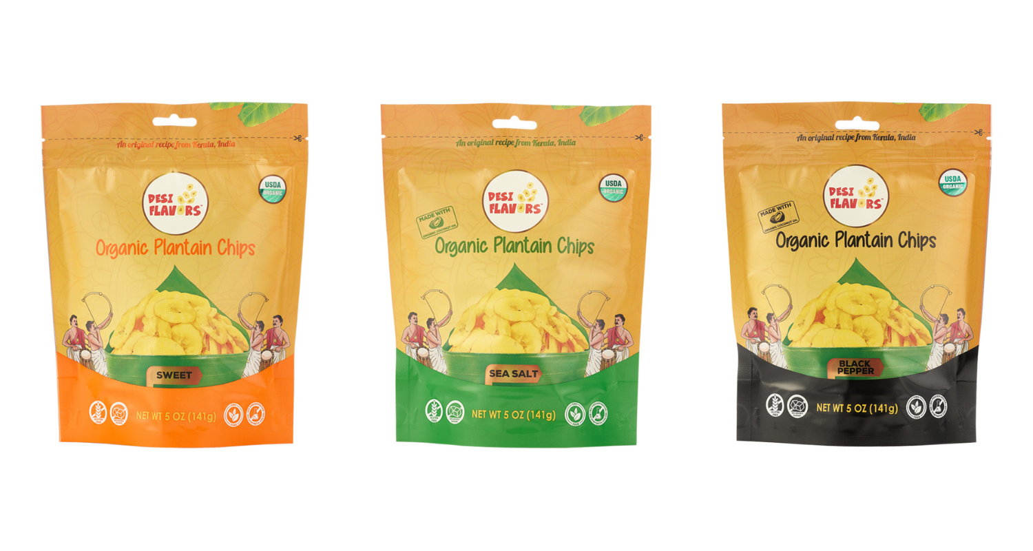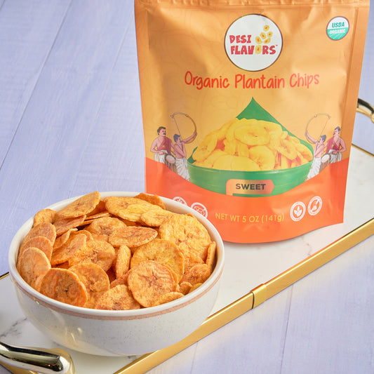 Discover Desi Flavors' Plantain Chips, a savory delight of Kerala, India. Known as 'Banana Chips' in India, they offer a unique flavor.
